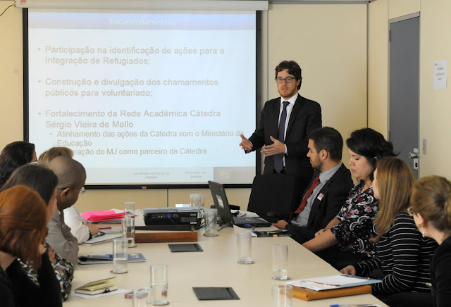 | Reunião dos membros do CONARE - Comitê Nacional de Refugiados com os representantes das Cátedras Sérgio Vieira de Mello das universidades brasileiras, realizada em Brasília em 24 de junho de 2015. |